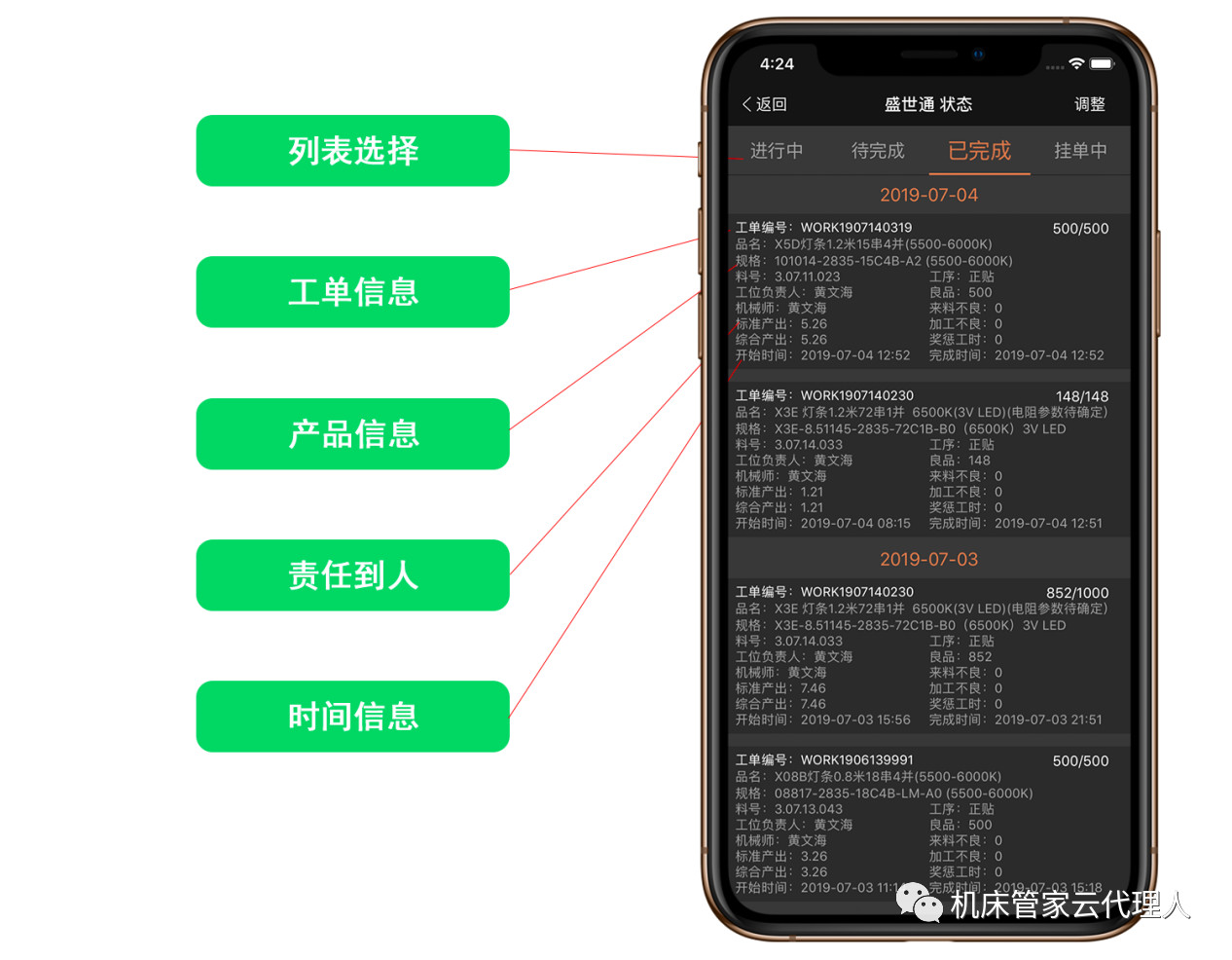 3. 老板及员工只需在APP查看生产情况,查看生产工单进度,即可答复客户交期。