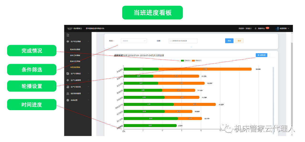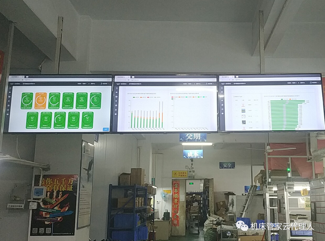 管理层使用的生产进度看板,目视化管理掌握设备运行情况,总体把握生产进度。