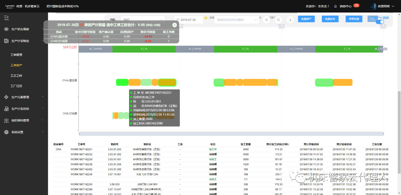 欧恩照明现有两条贴片生产线,组装线有8条,都有上线数字工厂树字工厂系统。欧恩照明产品有200种,生产料号达2000个左右,每日生产订单约150张,生产任务安排及效率提升一直困扰欧恩照明。